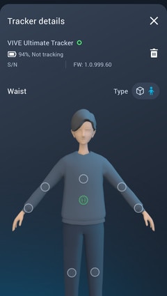 VIVE Manager, tap the tracker you want to assign a role to in the screen.